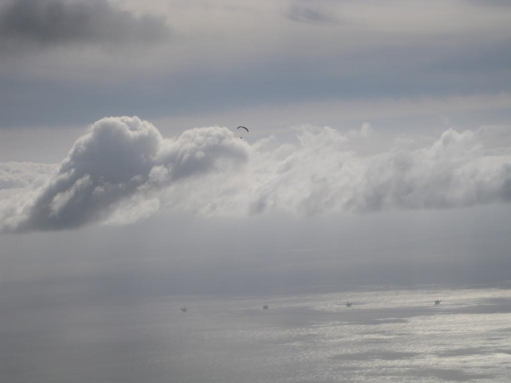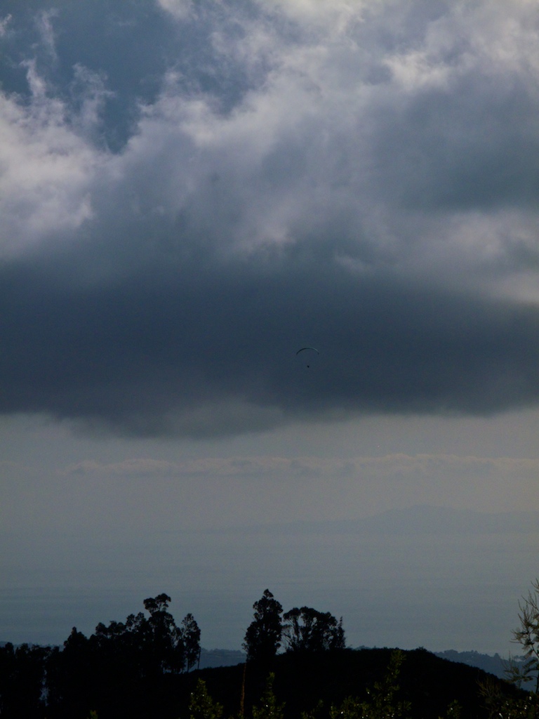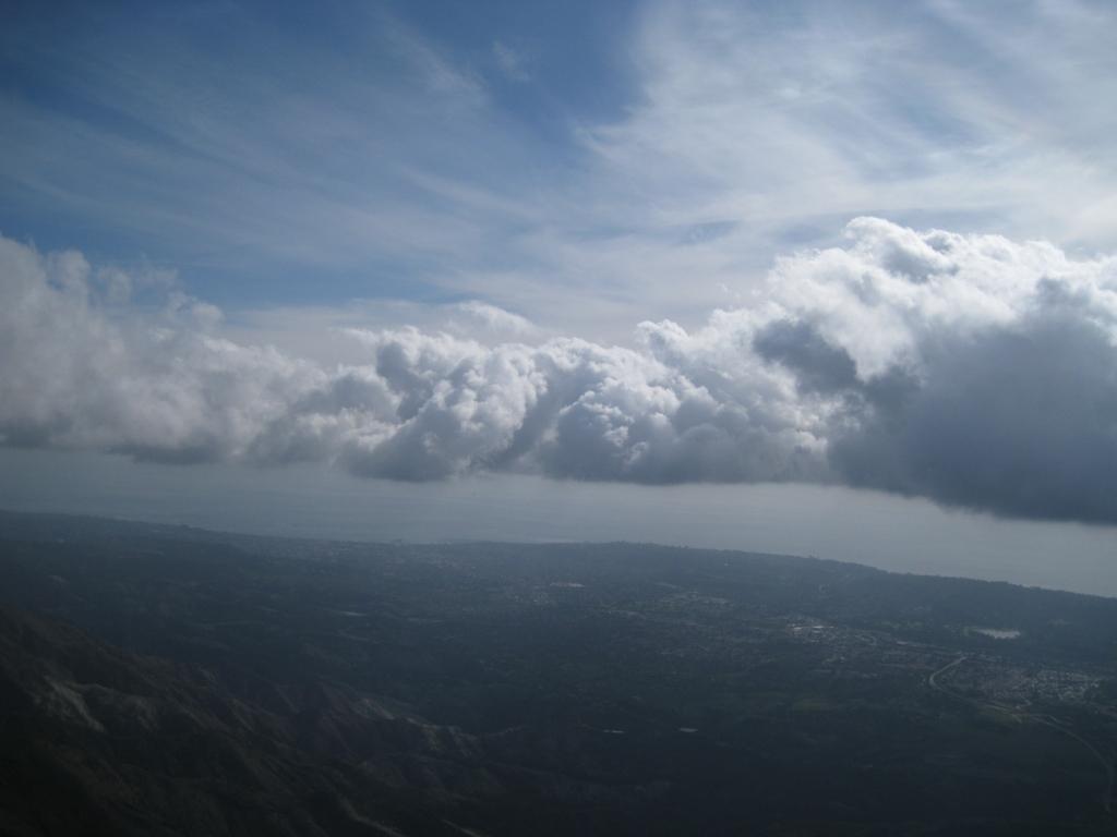 Flew the Grade today, and it was off the hook. Some usual suspects were there to enjoy the smooth and strong climbs to upwards of 4000' over the top of launch which is around 900 feet above sea level, putting a mind numbingly cold cloud base at just under 5k msl. XC was possible all the way to Moor Park if you had the proper attire, which we did NOT have, but we all stayed up and did out and returns to just about wherever we wanted staying clear of Camarillo and Port Hueneme airspace as large jets shot approaches below our altitude...very cool. I can feel my fingers again now. Sweeeet. Glad SB didn't dissapoint...I heard the Wilcox was very nice as well...Andy?