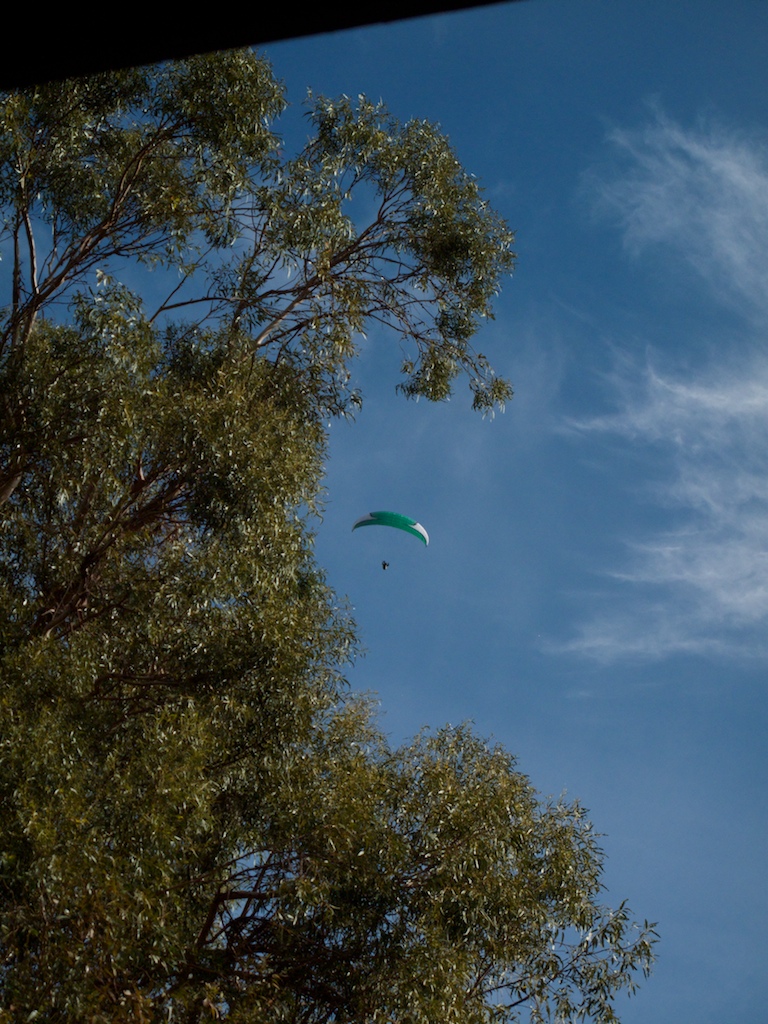 Connected to the clouds over the Holy Hills, denied at Cathedral, flushed into East side of West Bowl, rocked around in a strong thermal crossing the canyon, climbed easyily above West Bowl over the rocks, moved onto Noname, arrived low but pulled up and over the front spine and then over the top...