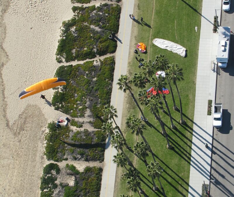 Yea, it looked better on paper, but it was still fun. I haven’t been flying much this year, so today was a treat for me. I blew my launch and my landing today – it was laughable, I’m way too rusty. Maybe I need a little remedial P2 work :shock: I flew with my friend Matt (Farmer) today. We fly in comps together all the time, but this was the first time he and I got to fly together outside of the comp scene. We shadowed each other the entire flight and had a blast. There wasn't a lot of altitude to be had along the range but it was fairly buoyant, and you didn't loose a whole lot on the crossings. Once we got down to the power lines it was obvious the North winds were going to be a problem going through the pass, so we made a 180 and headed back. On our way back we ran into the rest of the gang. Some took the glide to Padaro, as Chris mentioned, and some headed back with us. Marge was part of that group and she was flying great. She said to me later that this was her first out and return flight. Nice flying Marge. Matt and I polished off the flight with a glide to East beach…sublime. There’s nothing like going hands-up, relaxing and enjoying the stellar view all the way to the beach – sweet! Days like today remind me why SB is one of my favorite places to fly. Good to be back in SB.