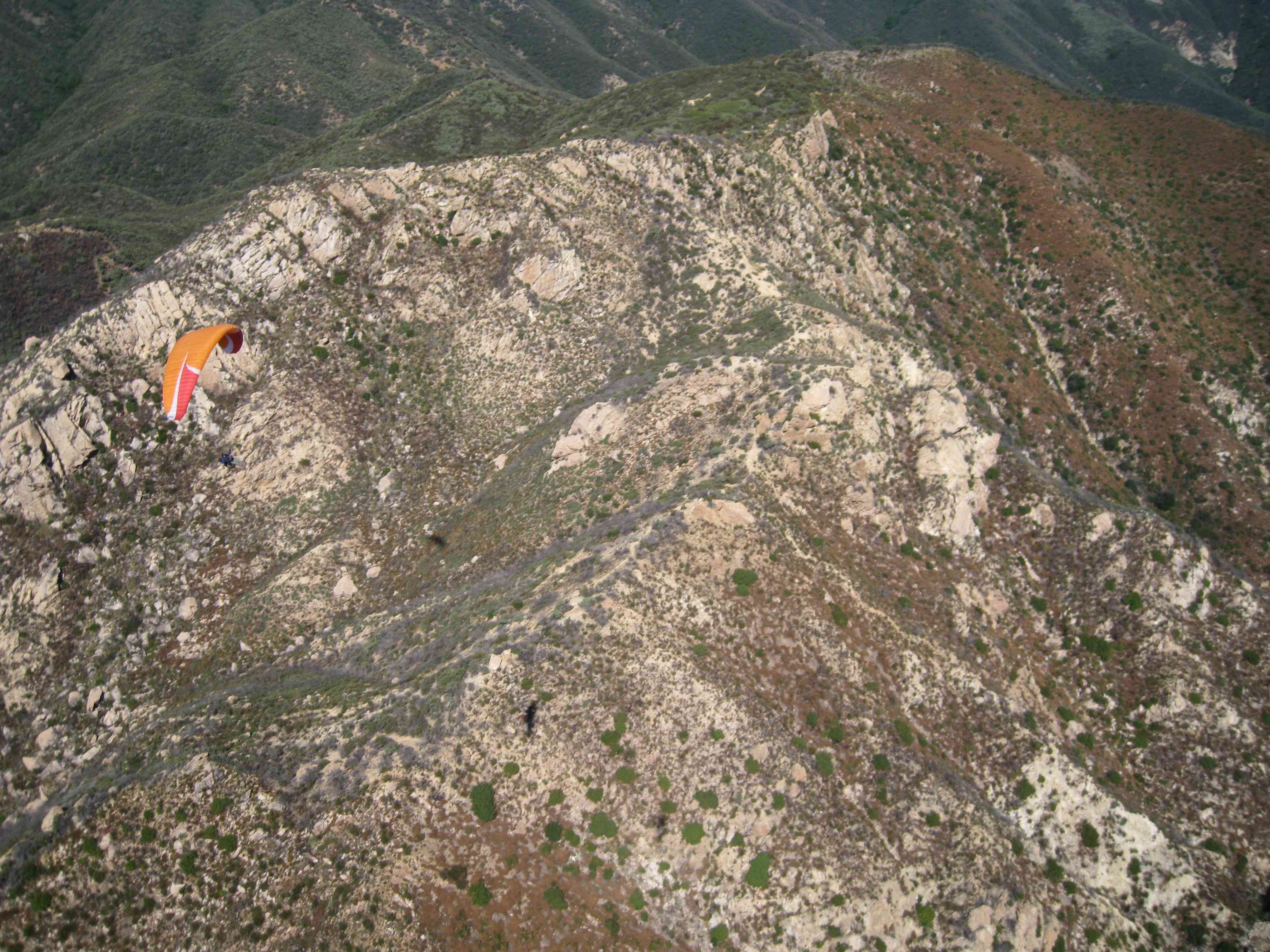 Oh yeah, sweet flying weekend! Had nice fishbowl flight between the RNR, Skyport, and Thermal Factory Saturday, then out to the beach to join the crew. 3800' a few times...took a few pics, a few of jon and kevin and redtail. later rode my bike from the Mesa to Parma for car retreive and exercise. Sunday was a bit better until the high clouds came in...I got decently up over Skyport and felt out the nooks and cranies of the East side of RnR while following lots of swifts intermittantly gliding and boosting up between spines. Low over the saddle, just below the rocks I connected nicely and got to climb out with lots of folks. Chris marked a nice thermal tracking in from the SE, just E of the saddle, we took that over 4k'...I left to EJ bowl and milked the ridge lift while chasing more swifts over to La Cumbre to join Aaron, easy figure eights up the face and over the top. Aaron left I stayed and it seemed to come together and reside, come together and reside up to 5k' - woohoo! Turned toward Alternator with a solid 13mph tailwind from the East...connected in front, thanks to a redtail marking the spot. Climbed back up to 5.1k'. Turned to No-Name. The clouds were in and everything was shaded...no lift over No-Name - should of taken the clue...no lift over the VOR, top of the spine to bottom...went to No-Name (since it was SW low) out front, skimmed bushes and maintained at 2500' for too long, some sun poped thru I was making progress but it shaded in again...I left for West Bowl and ridge soared it to the center spine, and got that sinking feeling...over the lines and out to Cocopah for a smooth landing. Left my dead battery cellphone in the car at launch...decided to walk home...Chris picked me up at Los Positas and Modoc. He offered to drive to launch to retrieve but I really needed to complete my detoxification program so rode from the Mesa to launch to pick up my rig. Nice sunset scary ride. 8)