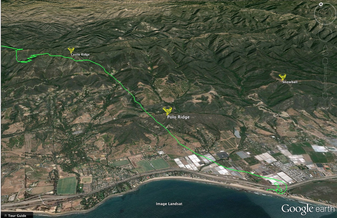 Unexpectedly found some light turbulence which was created possibly from the crashing of two wind directions exposed on the south faces of Castle ridge...or by the fans/steep spines of the same. So, I decided that I will make the final glide out to Padaro.