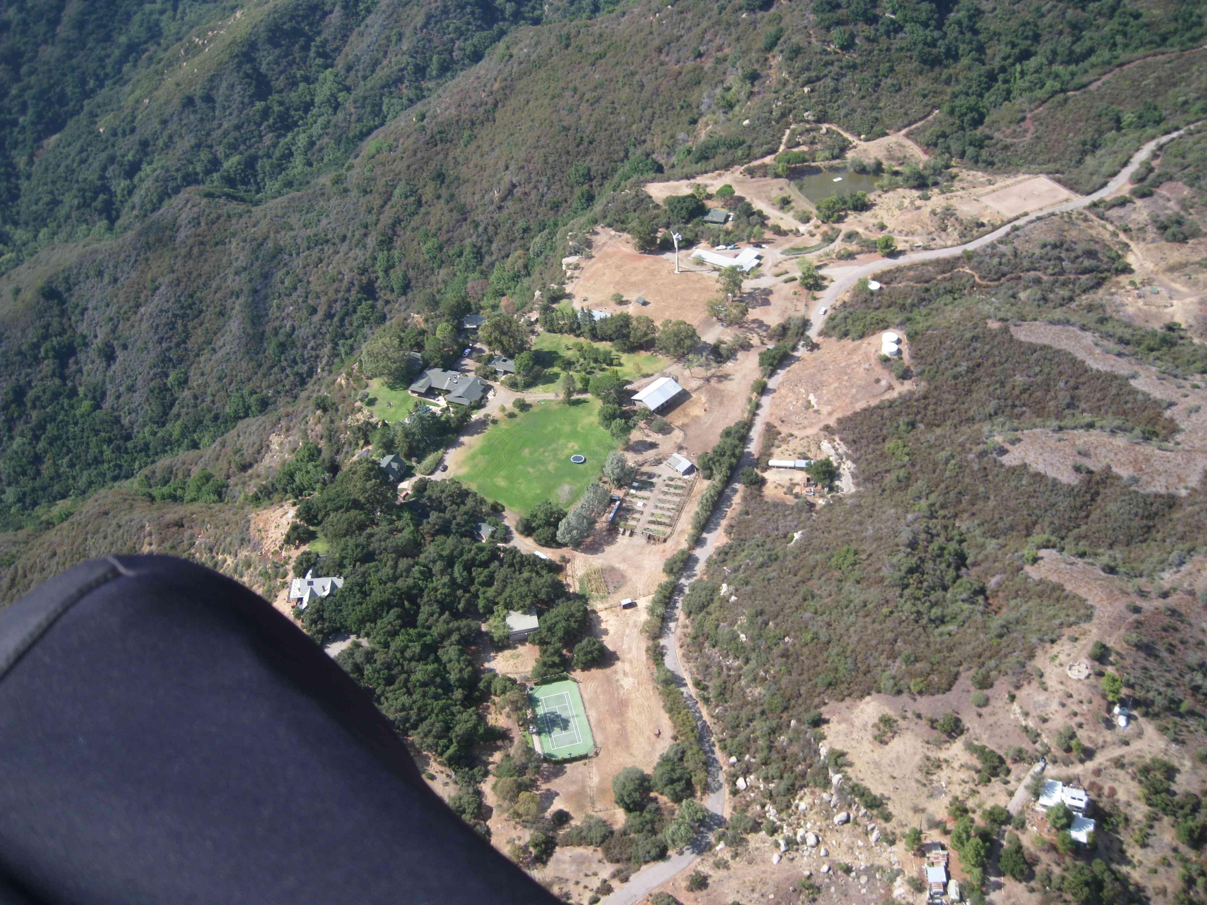 It was nice and cool when we arrived at the Skyport, but there was enough moisture on the ground to cause things to OD a bit pretty early. The good news was cloud base was nice and high. The lapse rate was good enough to give us light launch cycles. Neal was laid out on launch first and Little John and Hammer watched on from the Eliminator as Neal hucked. There was nothing at launch, but his glide was very buoyant and as soon as he got to the sun line at about the round house and antenna farm he started climbing.
