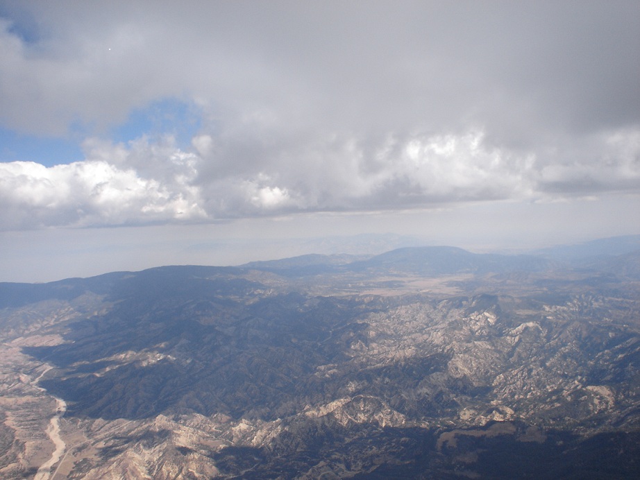The Cobra launched nicely when it was hooked up correctly and I entered the thermal of a lifetime about thirty seconds later. How big was this munificent thermal? God only knows. The only way to put it from experiencing it myself would be to say that it felt more like the whole earth fell away rather than the thermal lifted me up. BIG, yes, but with a kind, smiley face written all over it - not scary at all. It bode for a very decent day, but that wasn't to be the case. This bad boy, suma wrestler-sized thermal zipped us up toward cloudbase in no time. The sky was rapidly overdeveloping in places and we looked to the Lockwood Valley for step two. But my thermal wasn't done with me yet. It took me to an incredible 17,999 feet before I (finally) located some sink to turn in. With an 18,000 foot ceiling for our aircraft, it will be a lifetime best in altitude. And right over launch, not 15 minutes after takeoff. The predicted 18,000 foot temperature of -13 Celsius seemed fairly accurate to my exposed face. But I wound my way down to a more reasonable 16,500 feet and headed eastbound.