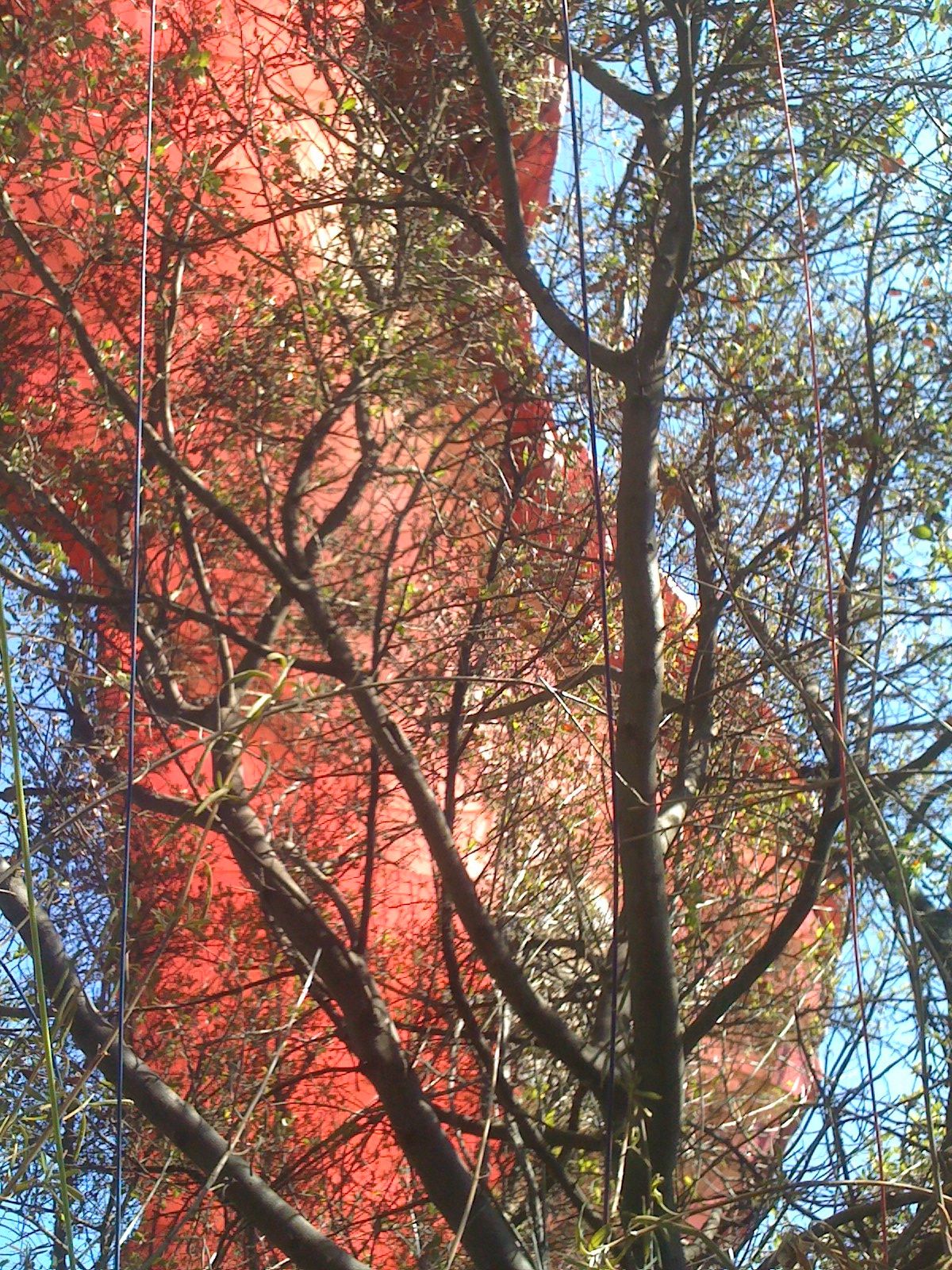 Much to my chagrin, heading to the left from launch intending to follow the Nordhoff ridge, I encountered massive sink. As I headed down the valley, I had to deal with 2 massive asymmetrical collapses (of course from the terrain side) which both headed me toward the terrain and lost me a bunch of altitude. Hands up and then "flying the glider" toward the center of the canyon saved my bacon. And so, the massive sink continued and I finally was forced to land at 1600' in some low shrubs, dry mouthed, horrified but happily unharmed. It took me an hour or two to collect my wits and untree my unharmed wing in order to start the hike down which wasn't too far (200'!!!) from humanity. Interestingly, as I was untangling my wing, I was astounded to see P2 Jesus, (HeyZoos) visiting flier from Miami, following my same sorry trajectory as I watched him safely side land in trees 500' above/behind me. He had launched, unaware of my misadventure, and experienced the same "survival flight" for himself.