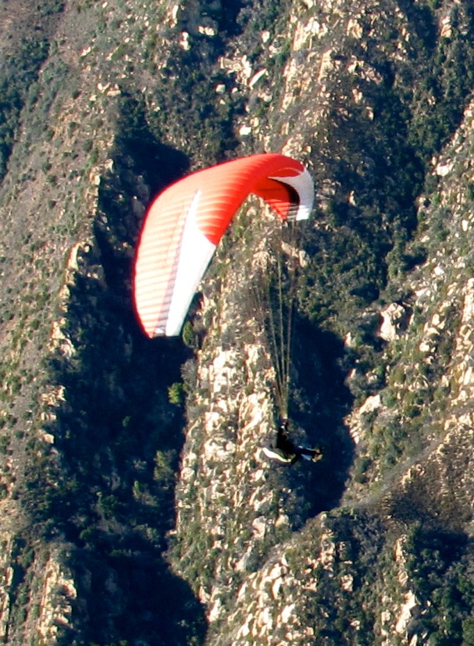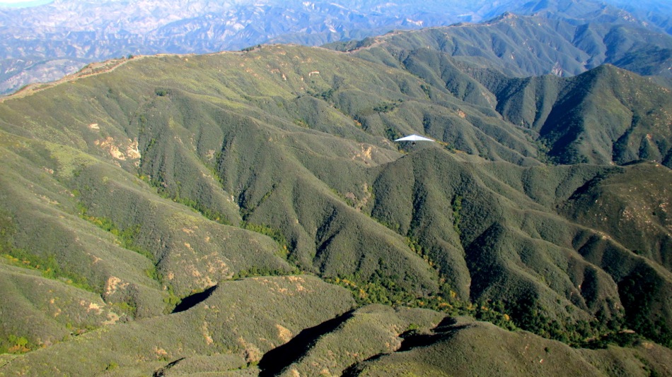 John A., Malcom, Mark from Colorado, me and Willy with his Falcon HG rallied at parma and headed up the hill about 11:30. We jumped off in nice cycles at eliminator/skyport. Quite the special no wind, buttery smooth lifty day. Slow, fat, smooth updrafts to 4700 a few times around the fishbowl. Once all five of us were up and together at thermal factory we headed east. nice glides. Mark hit 5200 at monicito. we all putted along taking in the views. romero and castle took some time to find it. most flushed or left at castle and headed to padaro. Willy fought it all the way down to someones fat backyard at the bottom of castle. i had intentions of tagging the powerlines before joining everyone at padaro, but i flushed a few ribs short and enjoyed the carp town tour before landing with the rest of the crew. sweet day! did i mention how smoooooth it was...