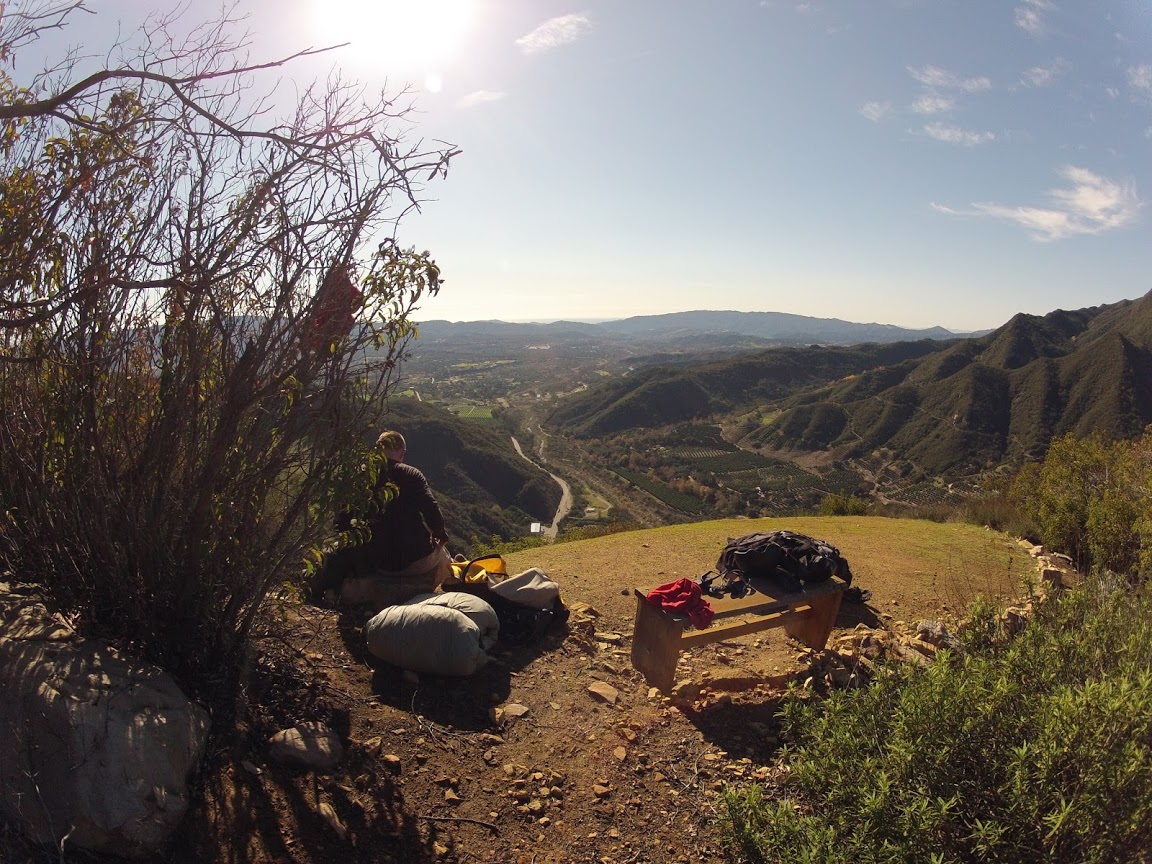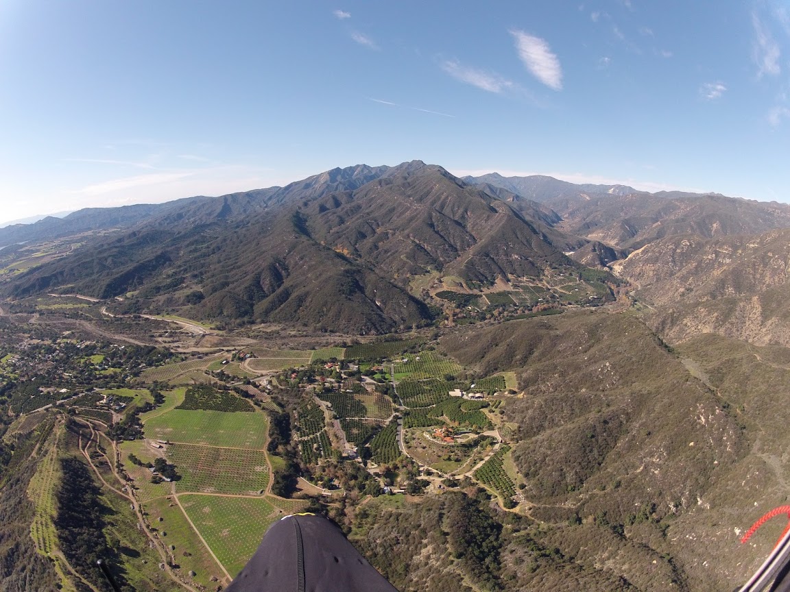 -the blips had given me some hope on the day and in a way it was what we wanted, why we were in ojai in the first place; only the SE was double+ predicted and it was v trashy... Sometimes the Bumps and Ledge seem like shark jaws instead of serene thermic oases to me. not sure coulda pushed outta there had lift disipated; my upwind glide to the HS took 1/2 an hour! as it was, the sky almost totally scudded within 15 minutes of hitting the ground... the nuthouse launch is perfect, gods bless her soul.