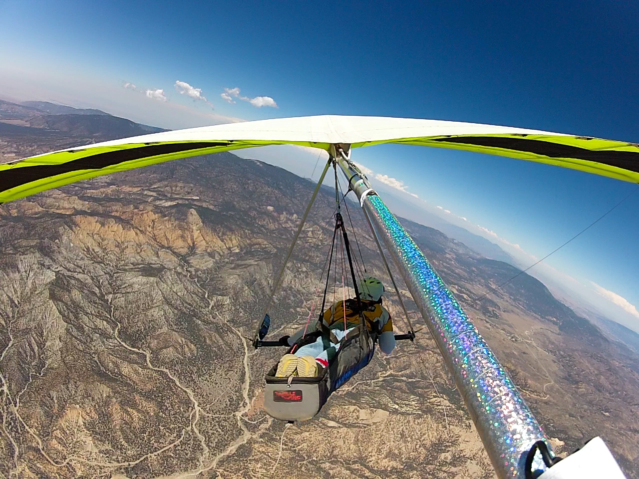 Inland (behind the Ojai Range) the lapse rate was good, but there was south wind at altitude. Jonathan Dietch flew Pine in the heat of the day on Sunday and eventually connected over the 50/50 to almost 12K, but fizzled across the south side of Lockwood Valley. His photos show some clouds to the north? The FlyAboveAll crew went to Pine Friday through Monday for the late day air. The were mostly getting about 1500 to 2K over launch. I think the feed line was further north.