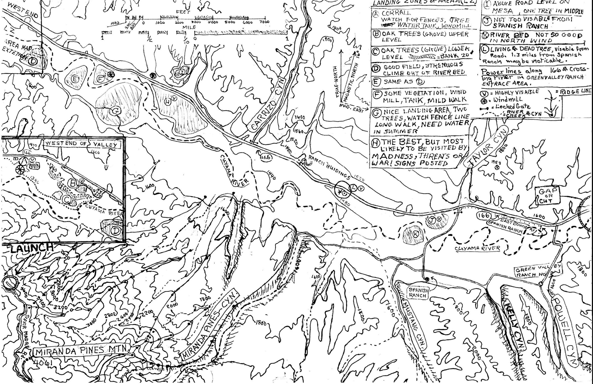 FWIW--Attached is a hand drawn map that Bill Hartwick made a long time ago. It shows the various LZs, launch, landmarks, etc.