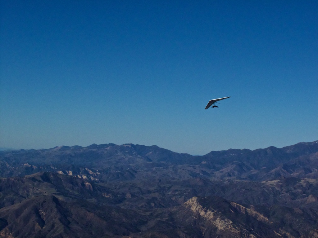 Awesome Fly-By shot Kabir ! Sweet flying conditions! Lots of smooth, broad lift out there. No East wind later on. Had a nice time climbing out at the Thermal Factory to start off while watching Zippy perform aerobatics out of the gaggle! I tried to stay clear but he snuck up on me from behind and flew just-under while looking back up at my owl eyes...I then went West to La Cumbre, S-Turned up the face with Kabir while Ty and Zippy turned circles out front, then onto Altermator for more climbing just out front. Out at the VOR with Ty low, Zippy was turning circles over the Bowling PIn letting us catch up...onto Painted Cave where I called it good while Zippy extended the turn point to Lizard's Mouth and back! :lol: Back East I had an unreal climb from No-Name drifting back to the NE hearing the gun club and fearing the richocet...managed to milk it to Alternator and float onto La Cumbre Saddle while Zippy dophined by skimming Earth thru the Saddle and kept going...I scraped it up the face of La Cumbre again and continued East not seeing Zippy again until Montectio figuring he'd tagged Romero already and was on the way back - course he was stalking and playing with me all along and did another great fly-by just-under while I was on glide to Secret Bowl, yes I was lifting my feet and they are normally out straight! We went to Romero road cut but the lift was slightly back West, we climbed out in sweet lift and off Zippy went to do Areobatics over Montecio peak while I cawled up Secret Bowl, after a nice S-turn session on Montecito, I flew out to the beach, not knowing where Zippy went...Mike Harrington on his way to pick up his glider, gave me a ride all the way back to launch for a sunset cruise. Thanks Mike! :D