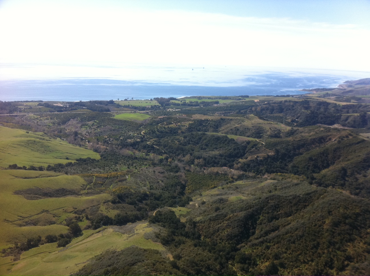 two overfilled vans headed up the hill to altenator. faoro jumped out there and showed us it was soarable and easty(p.s. awesome write up yesterday faoro!). dainsberg and i flung off and ridge soared around a bit and accuvet took off west so i followed with 4200. got a nice one at vor to 4400 for my high of the day. came over andy at painted cave as he was scratchin for a bit on the bluffs before connecting. Didnt feel nuttin but a tailwind, so with 3800 crossed the pass. bumped along low way out front and below camino cielo in weird stuff on the flat terrain until andy and i hung up on a ridge just before lizards mouth for a bit. finally got one to 3800 and headed westbound. andy was lower and taking awesome bold lines in no mans land. floated up and down a bit to condor point where we just got lower and lower on the front ridge. i think i bailed to hunt for an lz at 2500 and andy hung in a bit longer and lower... on the way out got a dribbler back to 2500 with lots of east which got me to a nice big grassy field next to the 101 a few miles short of el capitan. beautiful spot! andy put it down safely west of winchester canyon area. once we landed we see albatross bo come in right where we flushed on condor point, beam out, glide to santa ynez peak then over the back AGAIN!!!. albotrosses are starting to piss me off, he is way too good. he landed in los olivos. thanks to chris mckeller for the retrieve after his killer flight over 6k all over town. heard that wasnt uncommon today! awesome adventure and day!! fun flying with you andy! and amazing flying once again bo(#@!$%^#!)