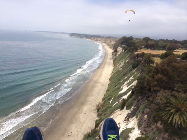 However, i personally had some great humility today that i think may be of entertaining light and i'm sure i bent some rules in my mistake, but whatevers. So i arrived at wilcox about 12:30 and it was light and straight, south south south eastish. took off and easily soared above the trees but not super high. the direction was incredibly straight so i cruised west and made it to more mesa where magic, dilly, jerry and alex were all enjoying the perfect zen moment. then i turned around and made it back to wilcox just as easy, never getting more then 100 feet about the ridge. with the sssse direction i have always wanted to land at the bar just south of leadbetter beach on a day like this. so i easily cruised up that direction and the light sssse kept me at least 100 feet above the ridge. when i got to shoreline kiddie park the kids were all going nuts as i was 100 or so over, so i waved and kicked and hooted back. Then i lost altitude rapidly and was very quickly below the ridge and hauling ass with a fat west tailwind. hmm, I thought it may have just been the spot so i pushed on thinking all would be good when i got to the east face of leadbetter just up ahead. i didnt make it that far and was over shooting the last small piece of beach(high tide) heading for a sure out to sea downwind landing where the surfers were at leadbetter(i was no longer above the ridge and would not be able to cut the corner to the sand at leadbetter). i tried to quickly hook back into the wind but only ended up further out to sea and thought i wouldnt be able to get it all the way around before hitting the water so i aborted and turned again back downwind with lots of swooping energy thinking i would try to get as close to shore as possible. i knew it was going to get ugly but i did have an acro wet dream of a moment when i saw my wingtip almost touch the water and i was almost perpendicular to it. then reality hit along with the abruptness of smacking the ocean hard downwind and my glory moment was gone. i tumbled a few times through the water and when i stood up i was thigh deep with lines wrapped around my head and torso. i panicked trying to get out of my harness as my glider was in the small surf and looked around as i thought i might need help. only one lady was on the beach in some yoga pretzel pose. i had made a big splash crash right in front of her and was worried about my glider pulling me under and she never even noticed. i guess that is the power of yoga. i eventually got my thousand pound glider and gear up to the rocks and half dry before dragging them around the point and up to shoreline park where Tye so kindly boosted me back to my car. I never thought i would land in the ocean, let alone crash into it. oh well, at least it was an amazing day. casualties of the pacific include vario, sunglasses, ripped glider, only speakerphone works on my iphone, banged up foot and tweaked back. i think i got off easy. love you guys and gals! see you up there and try to exercise your plan B before you no longer have a plan B ;)